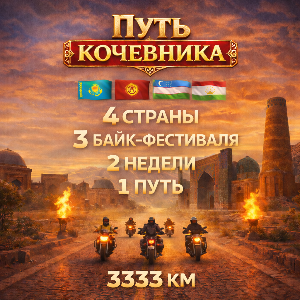 Легендарный мотопробег через горы, степи и города Центральной Азии, символизирующий единство народов и силу духа мотоциклистов.